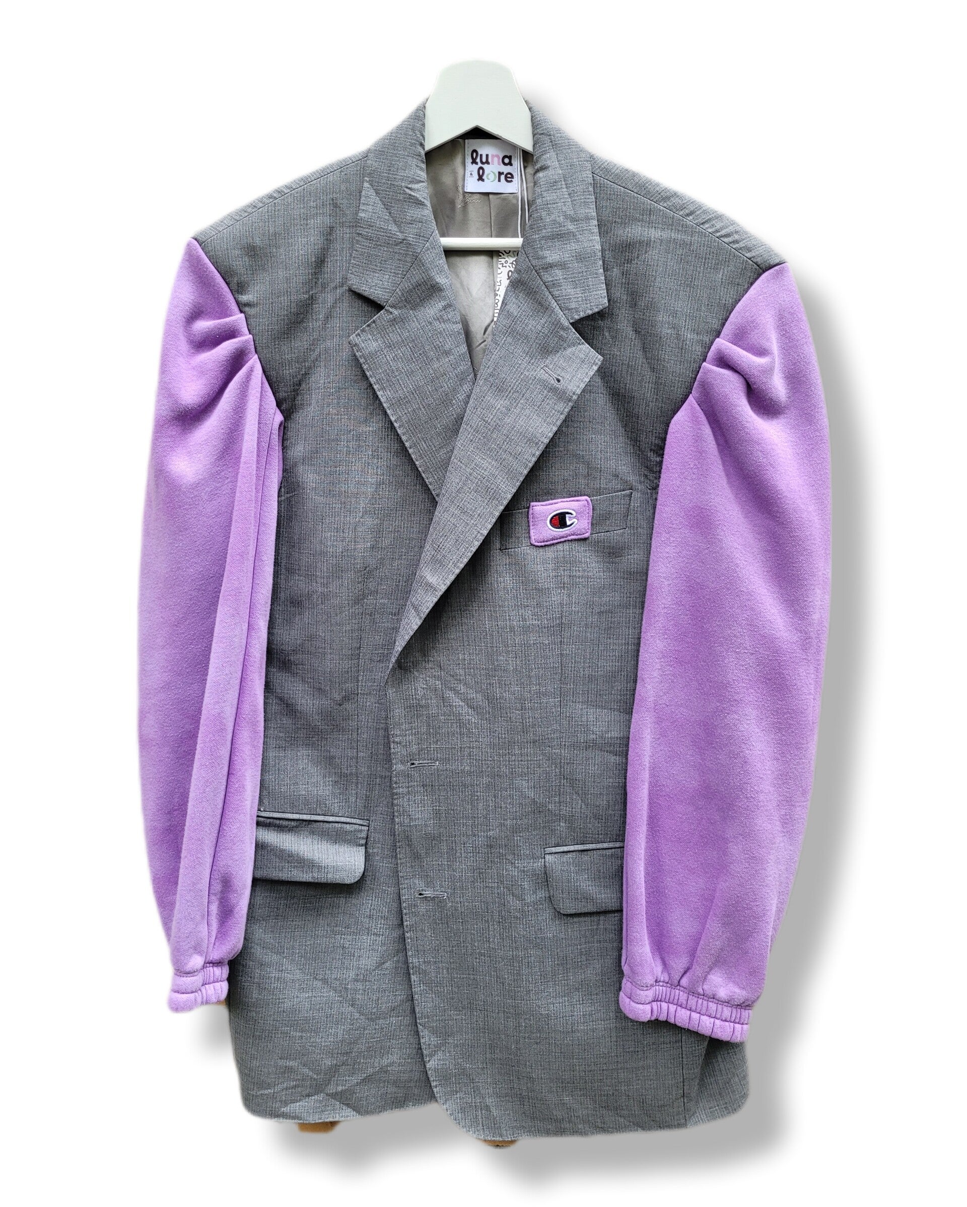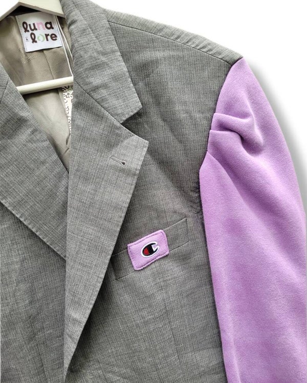 Upcycled Burberry blazer with champion sleeves