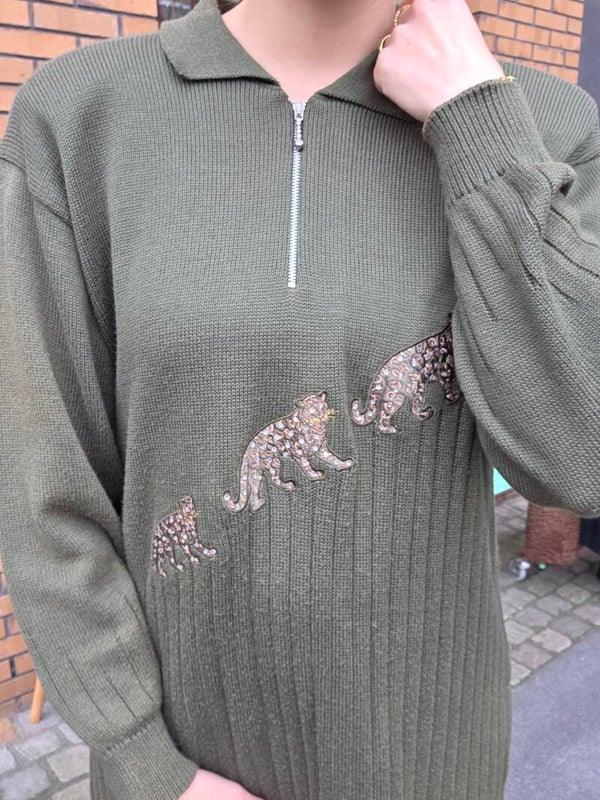 Vintage sweater with Leopard with schoulder patches