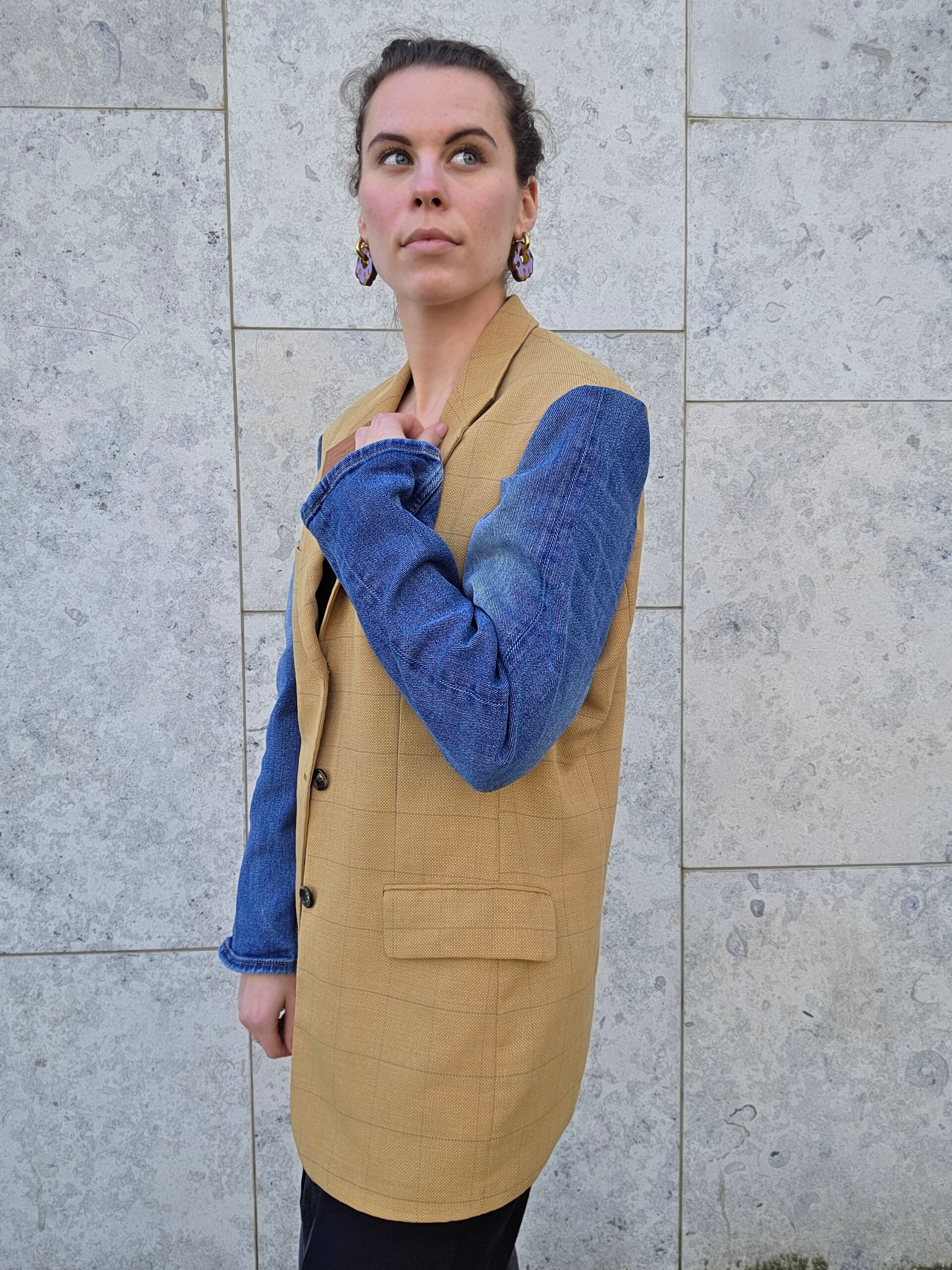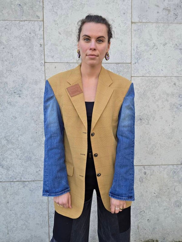 Upcycled vintage blazer with Levis sleeves and logo